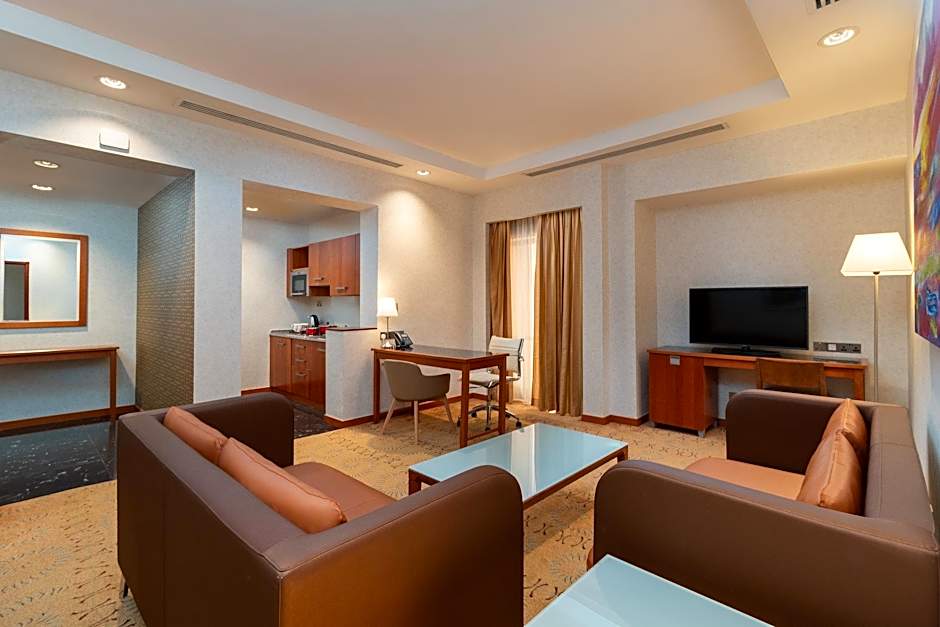 Offering free toiletries and bathrobes, this suite includes a private bathroom with a bath, a shower and a bidet. The suite's kitchenette is available for cooking and storing food. The spacious air-conditioned suite offers a flat-screen TV with cable channels, a mini-bar, a tea and coffee maker, executive lounge access as well as sea views. The unit has 1 bed.